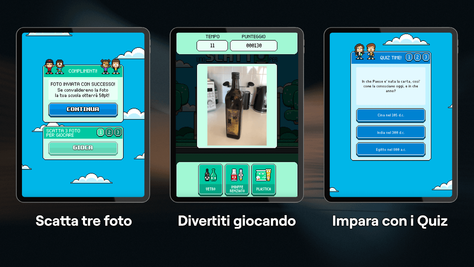 raccolta differenziata, hanno già mostrato e dimostrato quanta forza e capillarità possa avere un videogioco nella formazione. Con “Uno Scatto Per l’Ambiente” il videogioco diventa parte di un progetto ancora più ampio di formazione ed educazione ambientale.