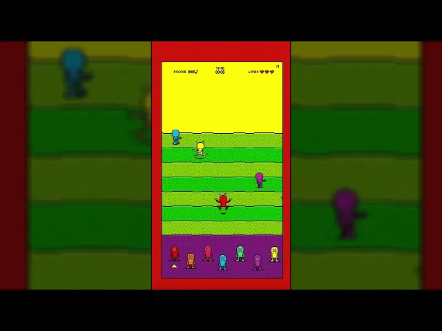 In un’ambientazione minimale e dai colori accesi il riconoscibile omino di Keith Haring prende vita all’interno del videogioco ottimizzato interamente in pixel art. Il giocatore nei panni dell’omino rosso deve spostarsi nello spazio del videogioco in alto e in basso per evitare di essere preso dagli altri omini colorati. Su tutti fluttua l’animazione del cuore alato dell’artista.