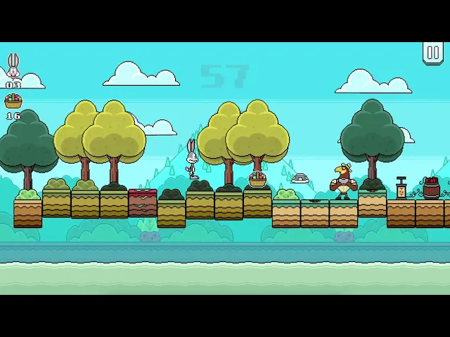 Il giocatore, nei panni di Bugs Bunny dovrà saltellare lungo il percorso, raccogliere quanti più cestini di uova colorate ed evitare gli ostacoli. Per evitare droni, funi e serpenti potrà rifugiarsi nella tana, basterà premere la freccia verso il basso per scendere nella tana e per risalire, una volta passato il pericolo. Attenzione, perché se vedi la tana vuol dire che Bugs Bunny può entrare ed evitare l’ostacolo passando sotto, direttamente dal tunnel sotterraneo. Tra gli altri ostacoli da evitare ci sono ponti sospesi sul fiume, coccodrilli che saltano fuori dall’acqua e TNT pronte ad esplodere!