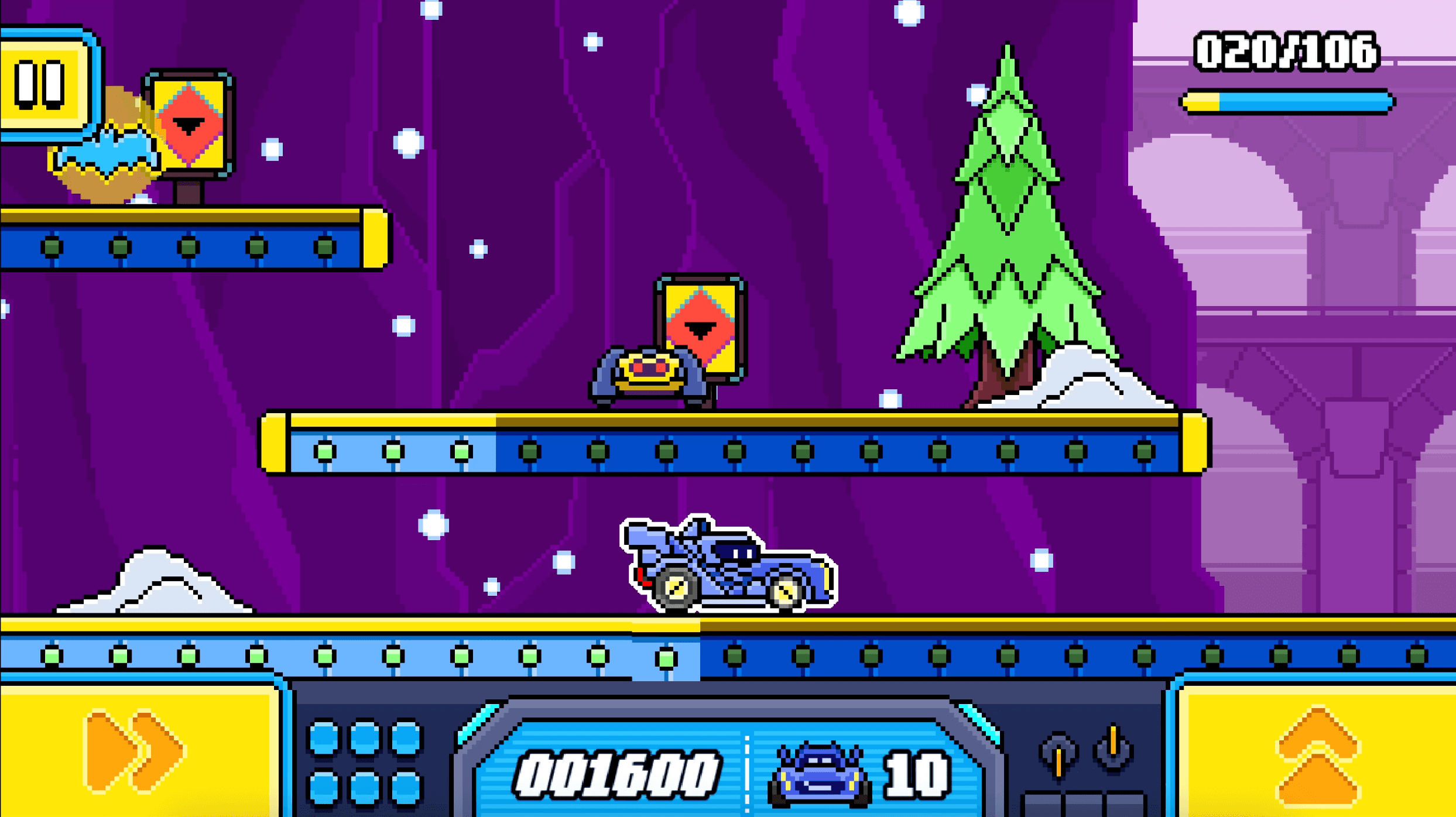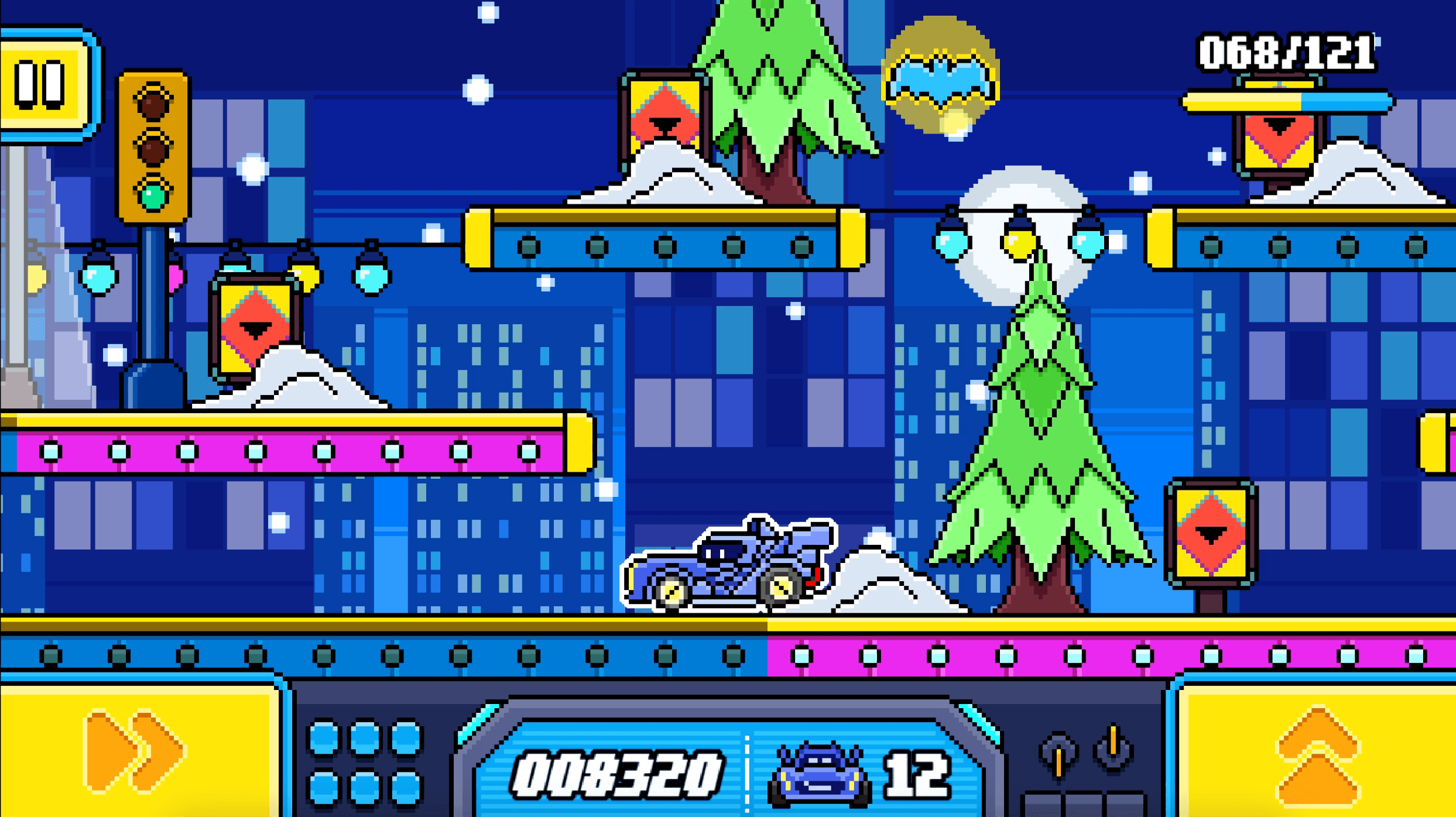 Preparati a vivere un’avventura pixel art invernale nei panni di BAM, l’auto più veloce di Gotham City!