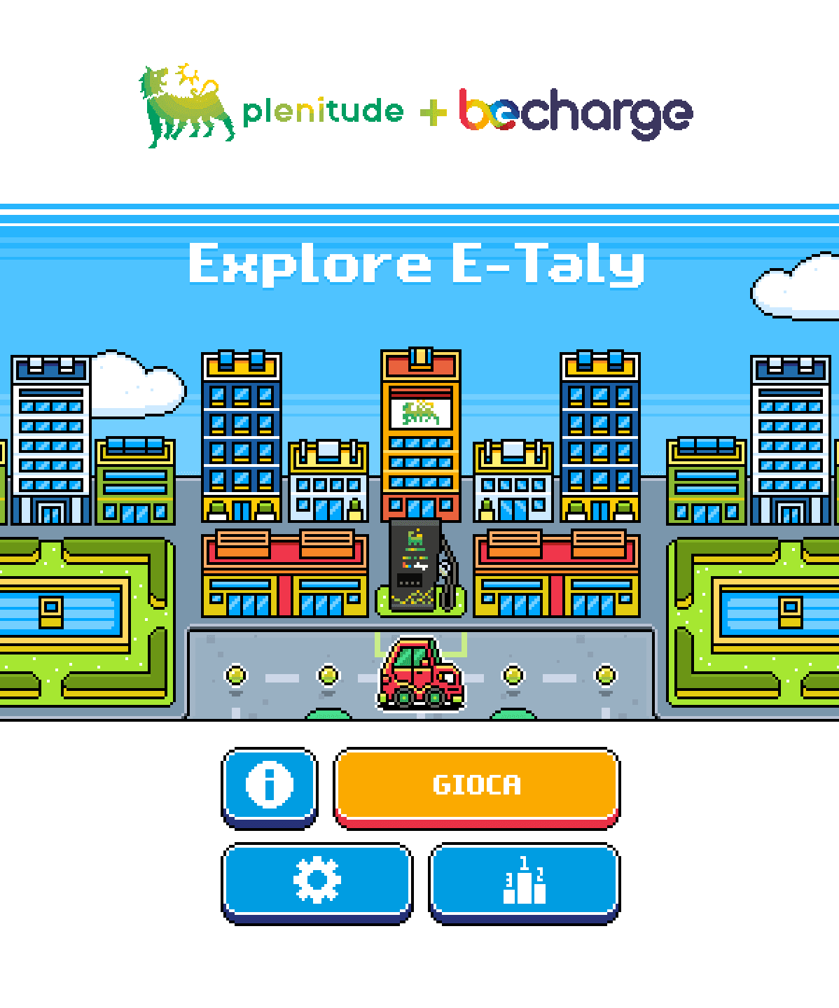 “Explore - E-Taly” è il videogioco realizzato per Plenitude + Be Charge, associato ad una campagna di education e comunicazione integrata e ad un concorso a premi. La grafica del videogioco è interamente in pixel art: dalle mappe da percorrere di “Explore - E-Taly” alla riproduzione di tanti monumenti del nostro paese come il Colosseo, piazza del Plebiscito, la torre di Pisa, il duomo di Milano, la Mole Antonelliana, piazza San Marco, i Nuraghi, i Trulli, la Valle dei Templi.