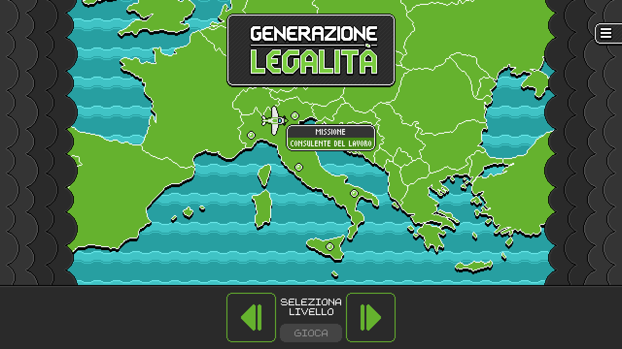 Il videogame “Generazione Legalità”, nasce all’interno di una strategia di comunicazione di sostegno al progetto “Lavoriamo per la legalità” e collegato a un concorso a premi. Ad oggi il videogioco è fruibile agli utenti da browser, tramite qualsiasi dispositivo.