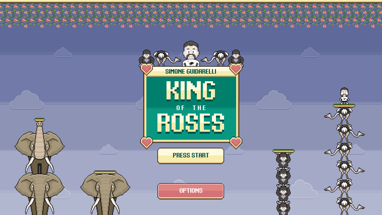 “King Of The Roses” è l’advergame realizzato per lo stylist e fashion designer Simone Guidarelli. L’avatar in 8-bit di Simone si muove all’interno del videogioco tra gorilla, elefanti e struzzi, in uno scenario legato alla sua estetica, rivista in versione pixel art.