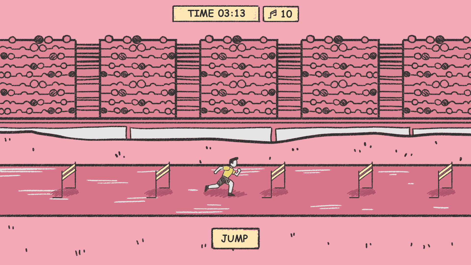 Supera tutti gli ostacoli che ti si parano davanti saltando al momento giusto. Mantieni il ritmo, evita le collisioni e accumula punti per sbloccare livelli sempre più difficili. Più ostacoli superi, più la velocità aumenta: resisti il più a lungo possibile per stabilire il tuo record personale!