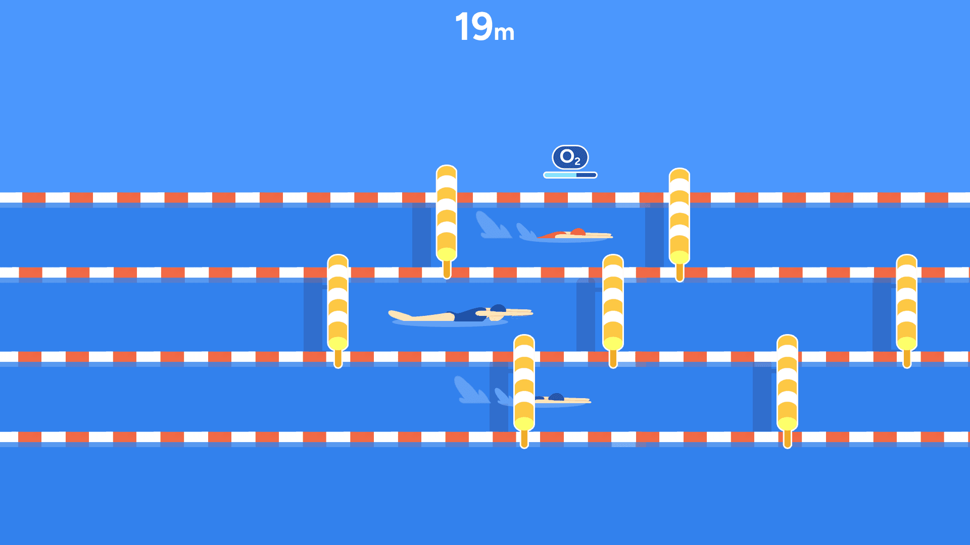 Avanza il più possibile evitando gli ostacoli lungo il percorso. Immergiti per superarli nei momenti giusti, ma fai attenzione al respiro: rimanere troppo a lungo sott’acqua può fermarti. La partita termina quando colpisci un ostacolo o esaurisci l’ossigeno.