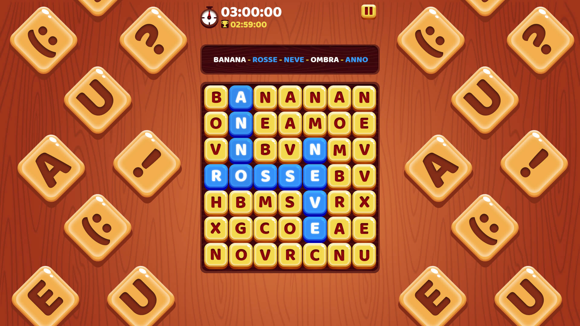 Individua la parola corretta seguendo l’indizio, collegando le lettere nella griglia. Completa la soluzione prima che il tempo scada e continua con nuovi enigmi. La partita termina allo scadere del tempo o quando non riesci a trovare la parola.