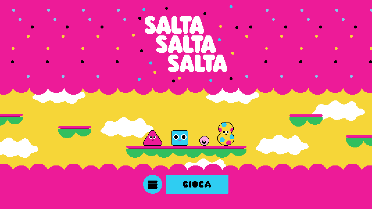 “Salta Salta Salta” è un videogioco realizzato per il sito e l'app del canale TV per bambini Cartoonito, accessibile gratuitamente da browser e scaricando l’app dagli store. Obiettivo del videogioco è intrattenere i piccoli giocatori e aumentare la notorietà della mascotte del canale, protagonista del videogioco.