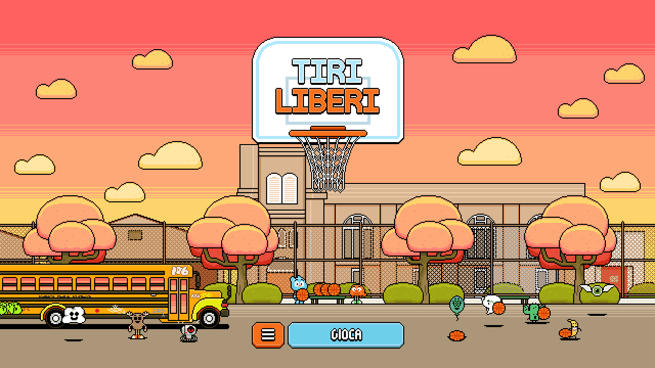 Il videogame “Tiri Liberi” è dedicato al gioco del basket. I protagonisti del videogioco, Gumball e Darwin, sono i personaggi del cartone animato ”Lo straordinario mondo di Gumball” che si alternano nelle sessioni di gioco. La meccanica del videogioco è la seguente: il giocatore prende la mira con l’aiuto delle palline di direzione e lancia la palla per fare canestro. Ad ogni tiro il canestro cambia posizione, quindi il giocatore deve fare attenzione a prendere bene la mira per fare canestro. Per ogni canestro si accumulano punti e al terzo canestro mancato termina il gioco. Il layout grafico è in pixel art e riproduce fedelmente i personaggi presenti nella scena e le ambientazioni che riprendono quelle del cartone animato. Alla fine di ogni partita appare il riepilogo dei punti ottenuti e del miglior punteggio.
